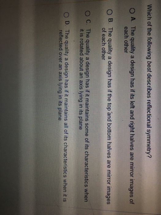 Solved Which Of The Following Best Describes Reflectional Chegg Com